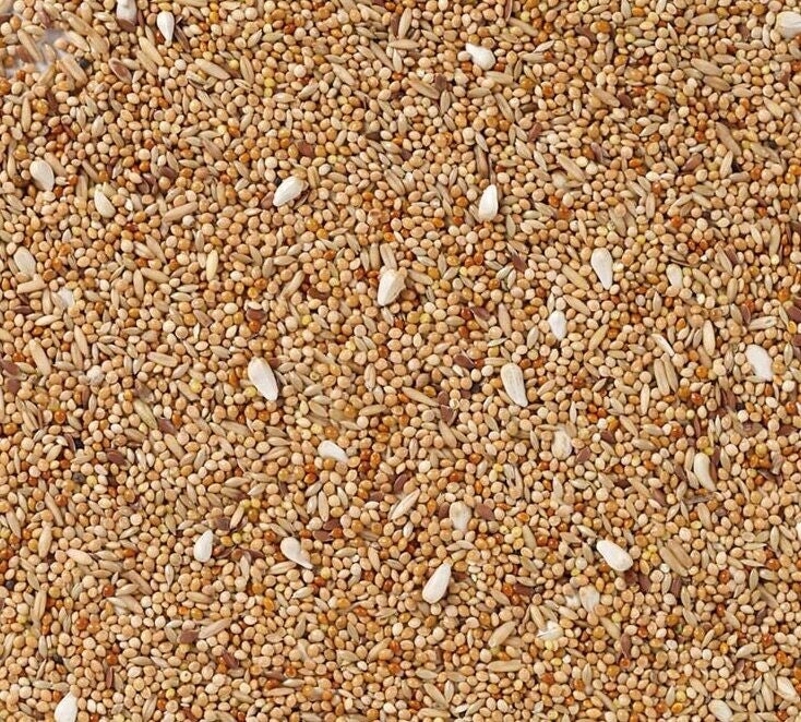 Millet jaune, millet blanc, alpistes, avoine pelée, millet rouge, graines de lin, cardi